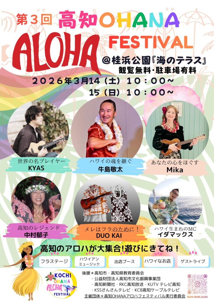 「第3回高知OHANA ALOHA FESTIVAL」を開催します。